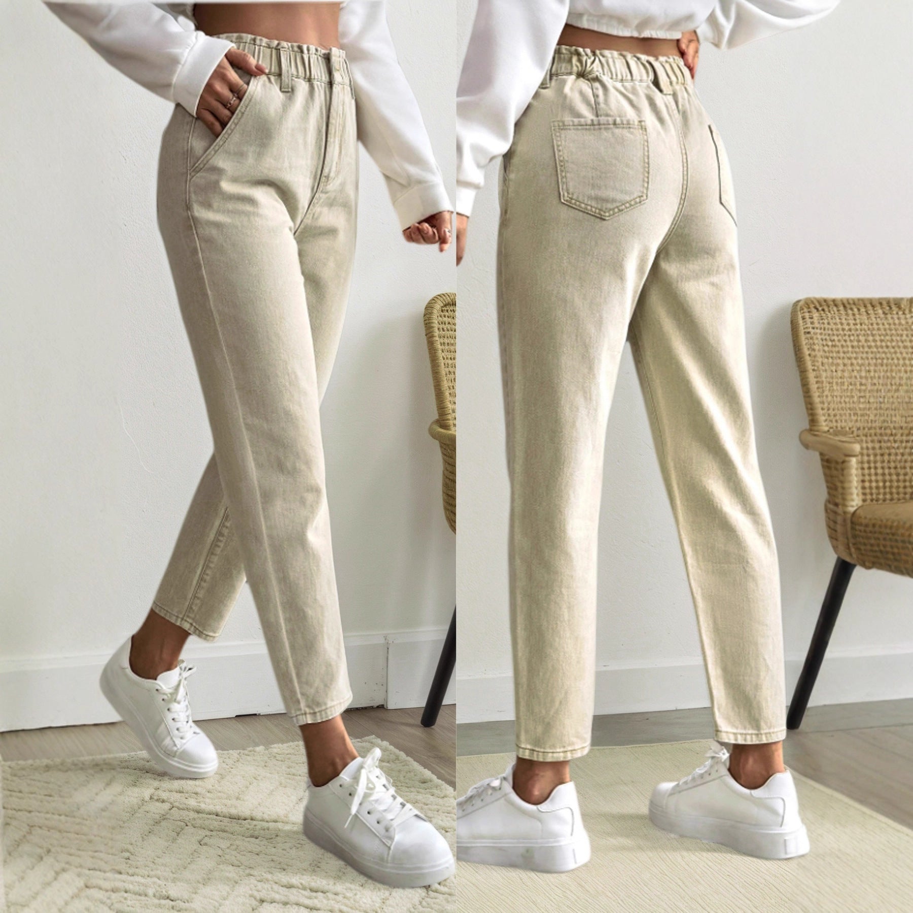 Slim-Fit Elastic Waist Casual Jeans